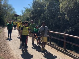 Vam realitzar dos itineraris, un adaptat i més curt per les cadires de rodes, les handbikes i la tercera roda i un altre més llarg pels demés usuaris/es sense mobilitat reduïda i les dues Joëlettes.L’Itinerari més llarg va ser fins a La font de la Portella, aproximadament a una hora del punt de sortida. El recorregut tenia unes vistes molt maques de Montserrat i tot el grup va gaudir de la natura i de la superació personal d’arribar a la font superant els obstacles naturals. L’itinerari més curt va ser fins al mas de l`Obac Vell, aproximadament a uns 20 minuts del punt de sortida i amb una pista pavimentada. Aquest trajecte el van poder fer els usuaris/es de Batllòria i de Vigatans provant alternativament les handikes, la tercera roda i la seva pròpia cadira.