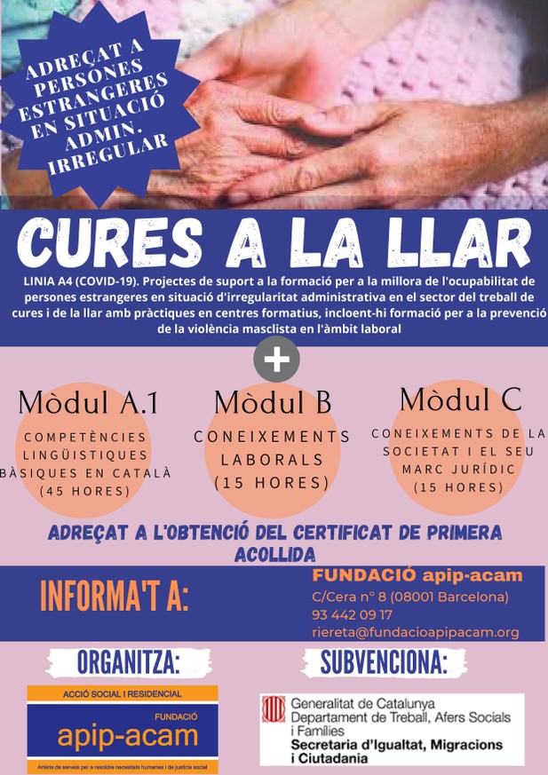 Formació de treball de cures i la llar per a persones estrangeres en situació d'irregularitat