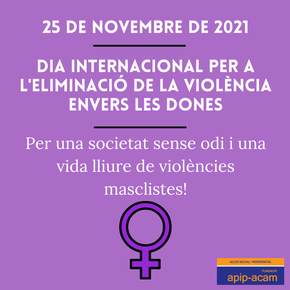En aquest marc, enguany la Fundació Apip-Acam ha participat en diverses activitats i accions per visibilitzar, sensibilitzar i condemnar les violències contra les dones: