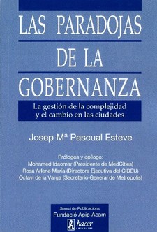 Aquest volum, , editat i publicat per l’Editorial Hacer, el Servei de Publicacions de la Fundació Apip-Acam, se centra en 21 paradoxes de la governança de diverses ciutats i àrees metropolitanes. Algunes d’aquestes són el fet que la innovació no és disruptiva, sinó fruit de l’acord; la participació, sovint, és un factor de descohesió social; la innovació és un retorn d’idees fallides; la gestió del conflicte pot ser un factor de cohesió i canvi; un acord és millor que una victòria; la seguretat ciutadana es construeix a través de la convivència o que la rigidesa legislativa és la principal font d’il·legalitat i corrupció.